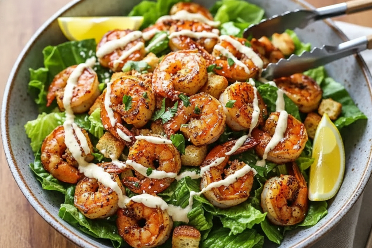 Hot Honey Blackened Shrimp Caesar Salad Recipe